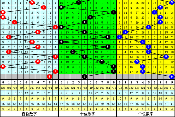 在以上统计中奖,直选001组合之后,下期奖号百位开出号码:123789,未开出号码0456,其中百位号码奇偶比为7:3,012路比为4:3:3,大小比为6:4,本期展望百位出现大号,精选一码8。 下期奖号十位出现号码:0145789,未出现号码236,其中十位号码奇偶比为5:5,012路比为2:5:3,大小比为6:4,本期看好十位开出偶数号码,胆码讲理4。 下期奖号个位出现号码:13457,未出现号码02689,其中个位号码大小比为3:7,奇偶比为8:2,012路比为3:5:2,本期个位提防大号,参考号码9。