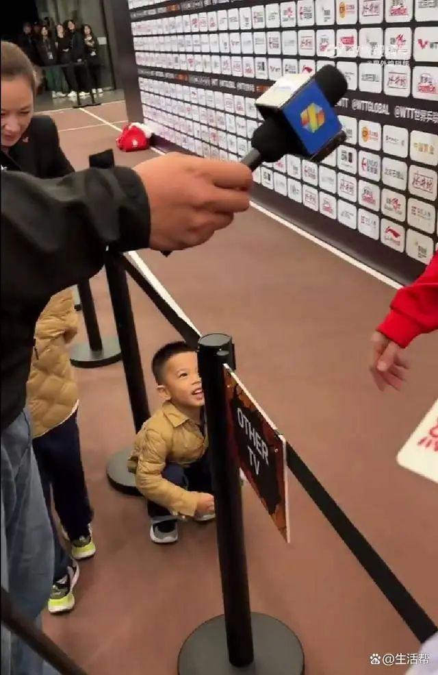 赛后,马龙正在摄取媒体采访时,两个男儿闯入混杂采访区,打断了采访。小男儿更是稚子地蹲在地上,马龙赶紧对他们说:“你们俩先到何处!”但小男儿专爱逗趣,仰着脖子对父亲招手,并喊了一句,“Hello,爸爸!”记者们皆为之失笑。